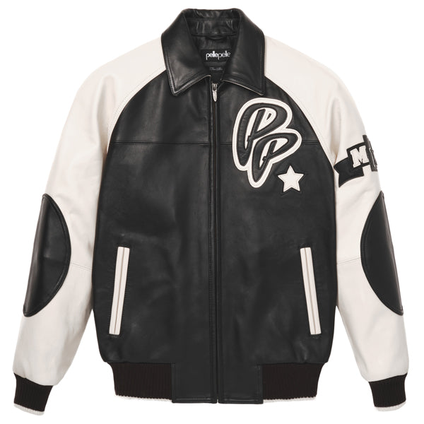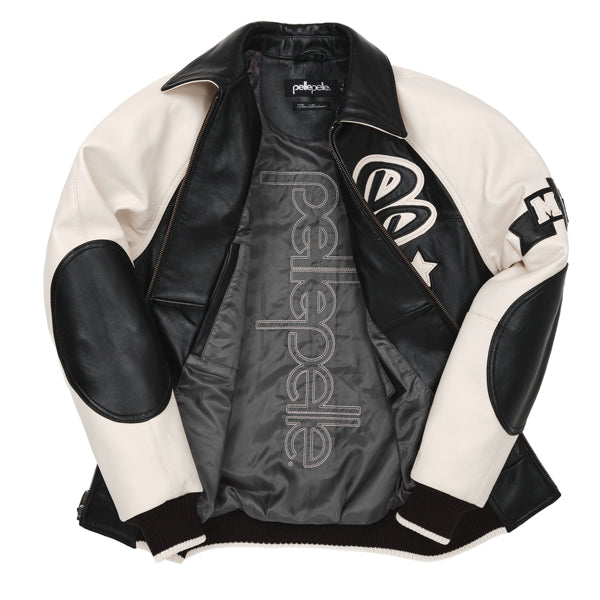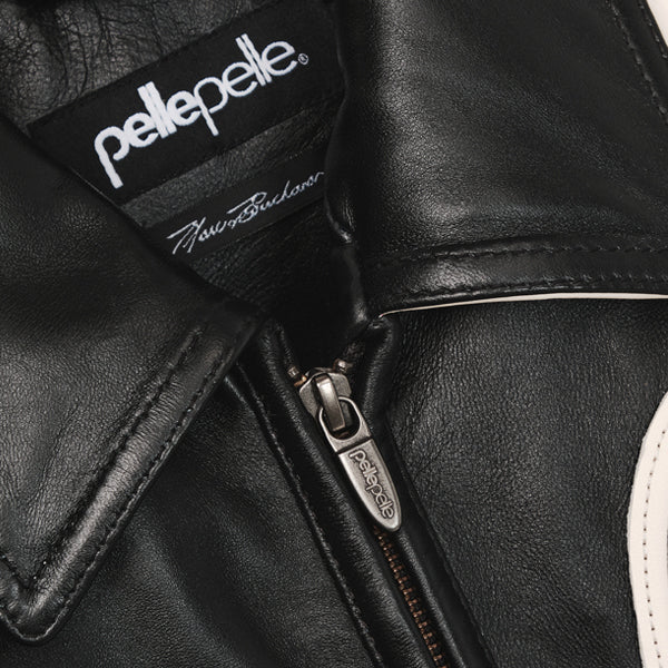 - 2 PLY OVERSIZED "SODA CLUB PELLE PELLE" LEATHER APPLIQUE ON THE BACK OF THE JACKET