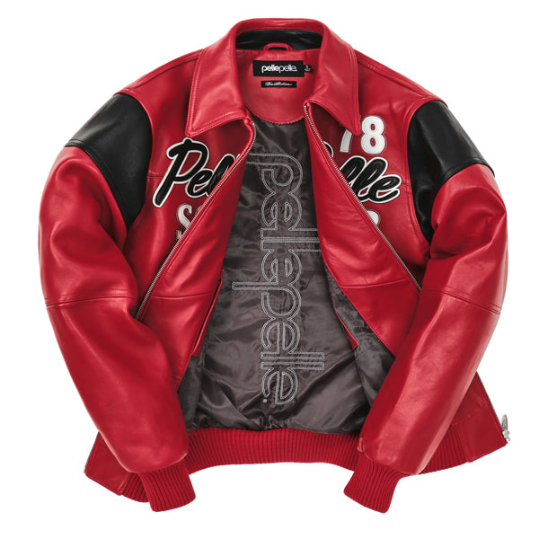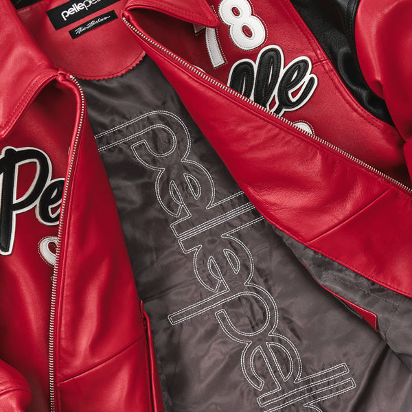 - 2 PLY "PELLE PELLE SODA CLUB" NEOPRENE FILLED LEATHER APPLIQUE ON THE BACK OF THE JACKET